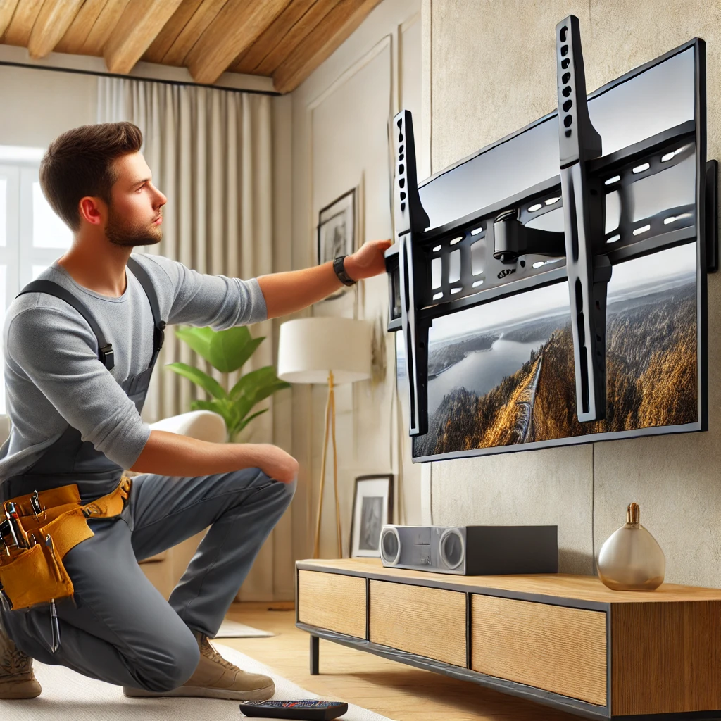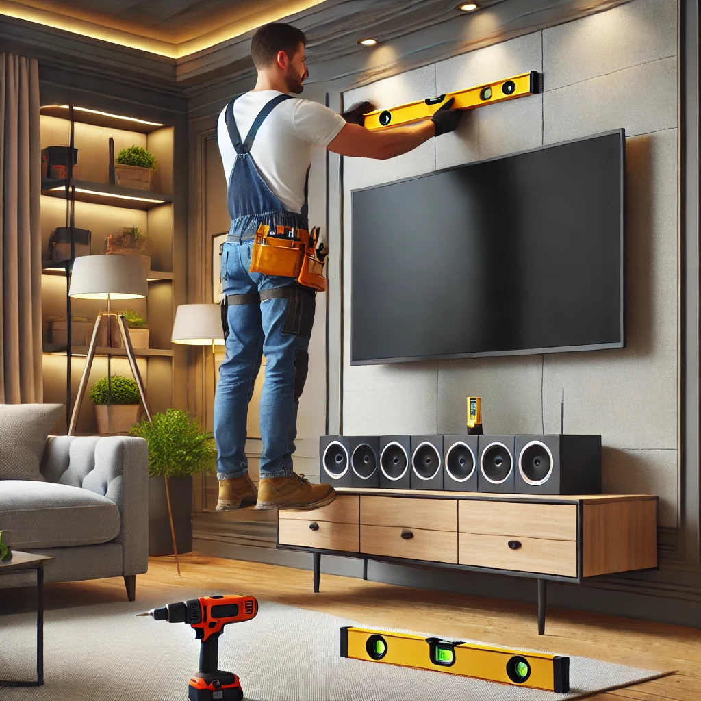 Mounting TVs along with sound systems for a complete setup.
